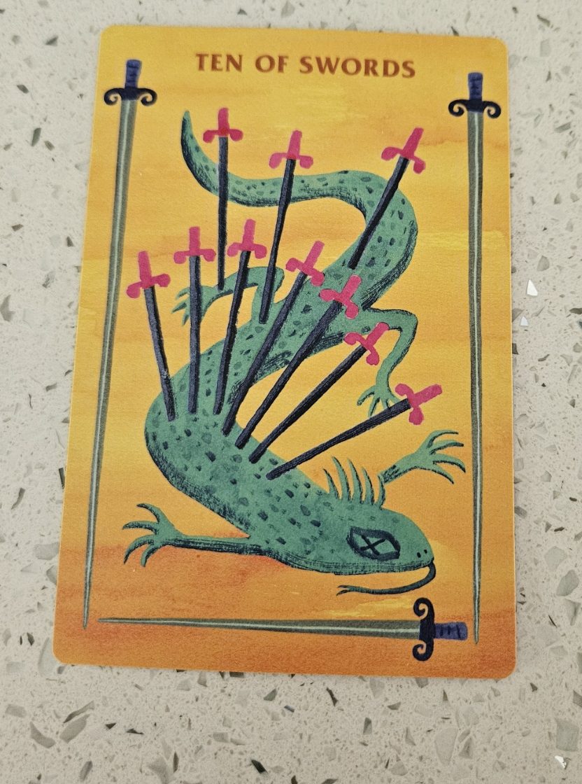 There is a sense of commitment with all the Tens. Mostly, a commitment to follow through with something to ensure you don’t lose what you’ve worked so hard to build. This could have to do with financial security, long-term relationships, or accepting rock bottom. They all call on a part of us to acknowledge our ability to sustain ourselves and others. Interestingly enough, the appearance of the Tens show us that change is on the way, too. As I said before, it represents a major milestone after a period of hard work. The Tens can also represent the natural conclusion of something in your life.